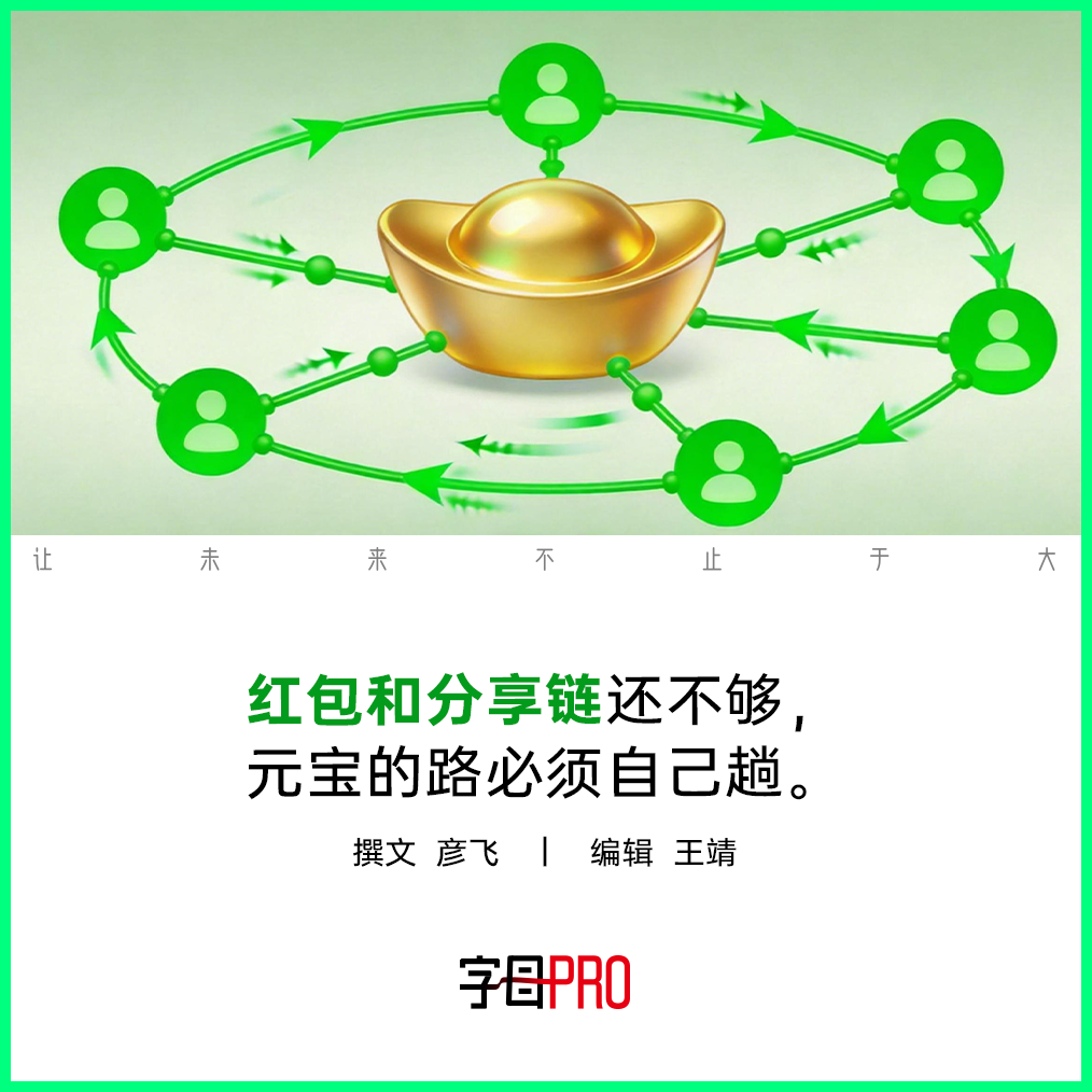 今年春节,腾讯给元宝安排了10亿元现金红包。但这笔不菲投入的战略意义,依然远不如微信拿出压箱底的分享链慷慨。