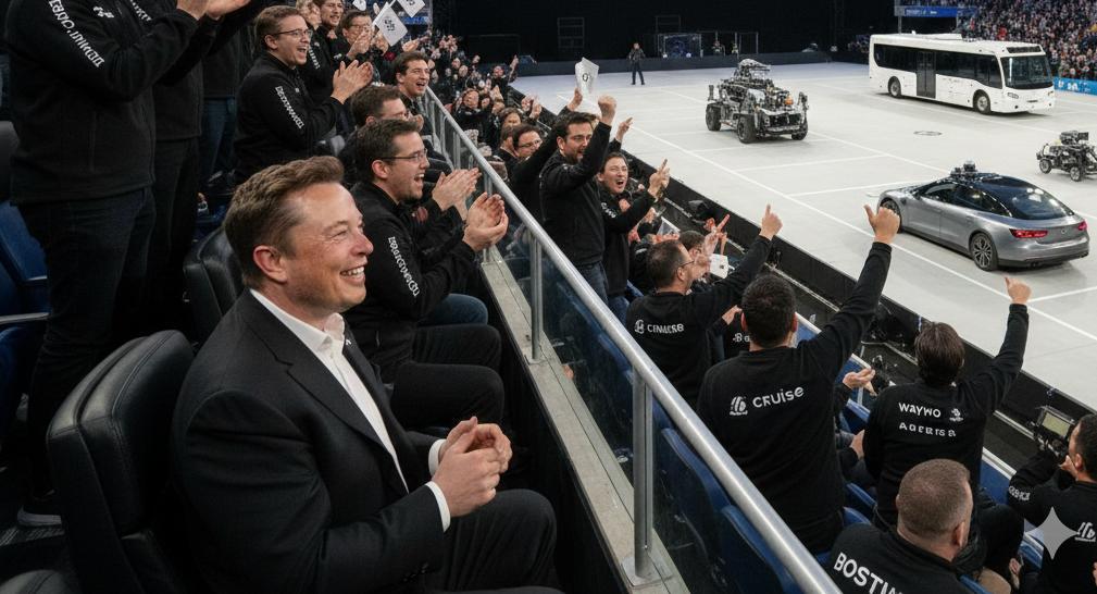 马斯克在场外直点头,毕竟他是搞机器人的。波士顿动力的人在鼓掌,做自动驾驶的人在欢呼。