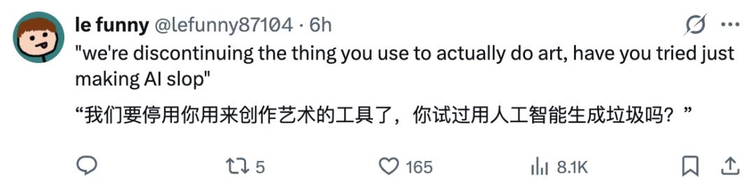 在他看来,这个决定极其不负责任。Adobe的做法不仅会影响无数从业者的正常工作,还可能影响大量既有作品的质量。