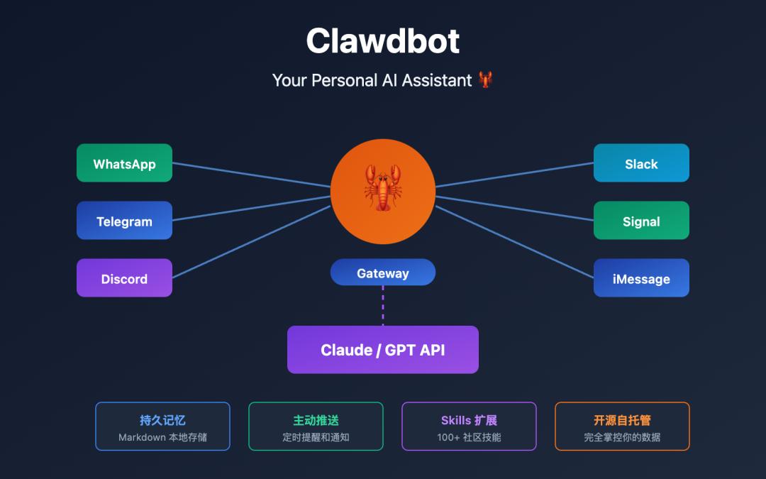 ClawdBot爆火的本质是什么?仔细分析它的功能特点,它能接入各种工具,能长期记忆上下文,能主动定时执行任务。这三点组合起来,就是数字员工的雏形。有了定时任务和各种技能的加持,用户可以让它每天定时检查邮箱、整理数据、生成报告、发送邮件,自动完成大量重复性工作。