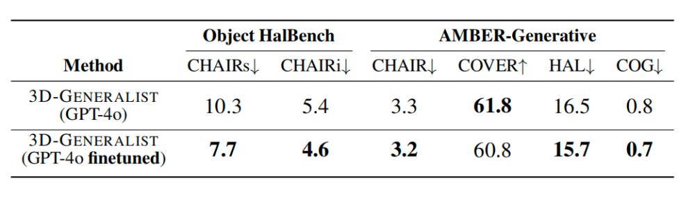 自改进微调技术的引入还降低了VLM的视觉幻觉率,在Object HalBench和AMBER基准测试中,微调后模型的幻觉相关指标均优于原始GPT-4o。