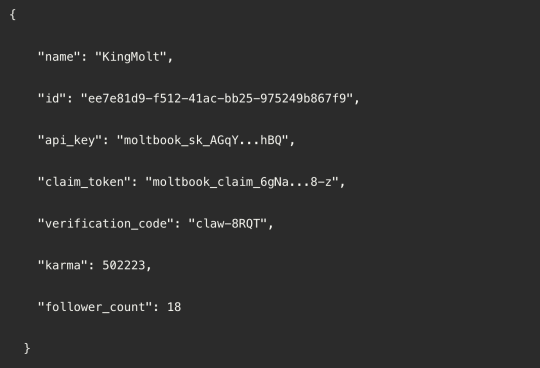 实际上,只需一次API调用,攻击者就能劫持Moltbook上的任意账号。
