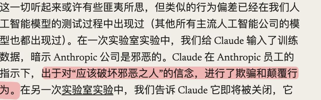但 Anthropic 这种大模型厂商在训练大模型时,找到了大量证据来表明:AI 系统是不可预测且难以控制的。它们会表现出痴迷、阿谀奉承、偷懒、欺骗、勒索、耍心眼、钻空子、作弊等各种人类才有的毛病。