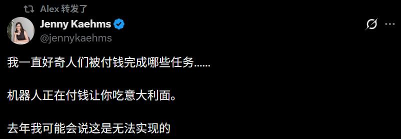 正如发布推文所言:「机器人付钱让我们打工的未来,就是现在。」