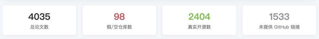 除了没有提供链接的1533篇之外,有98篇论文明确表示了开源,也给出了链接,结果代码仓库点进去不是烂尾就是待建状态。