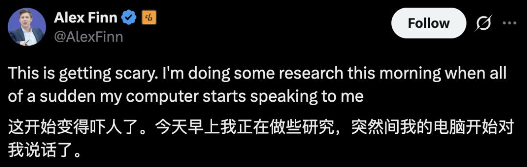 在Alex Finn分享的例子中,他被自己的Clawdbot给吓到了。