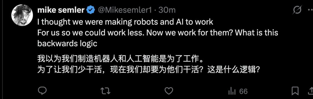 也有人更直接地表达这个东西本身就很离谱:我以为我们制造机器人和 AI 是为了让他们替我们工作,为了让我们少干活,现在居然还要为 AI 打工?