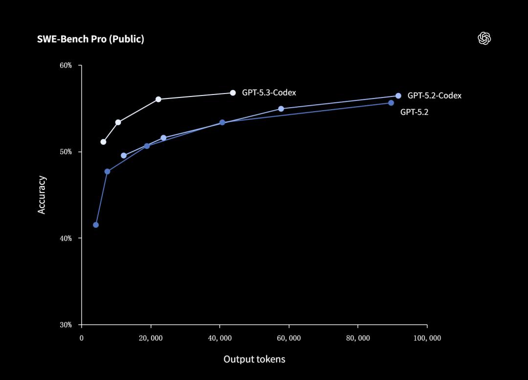 GPT-5.3-Codex在评估现实世界软件工程的SWE-Bench Pro评测中,创下了行业新高。