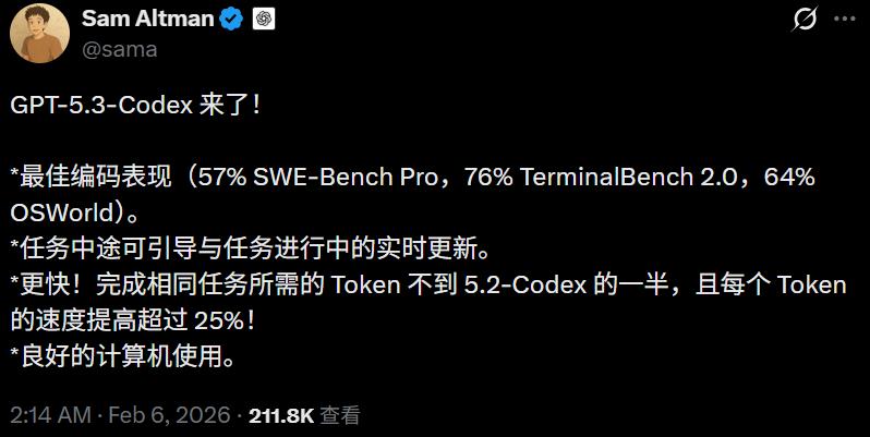 作为回应,OpenAI仓促应战,不过半小时紧急祭出最强智能体编程模型——GPT-5.3-Codex。
