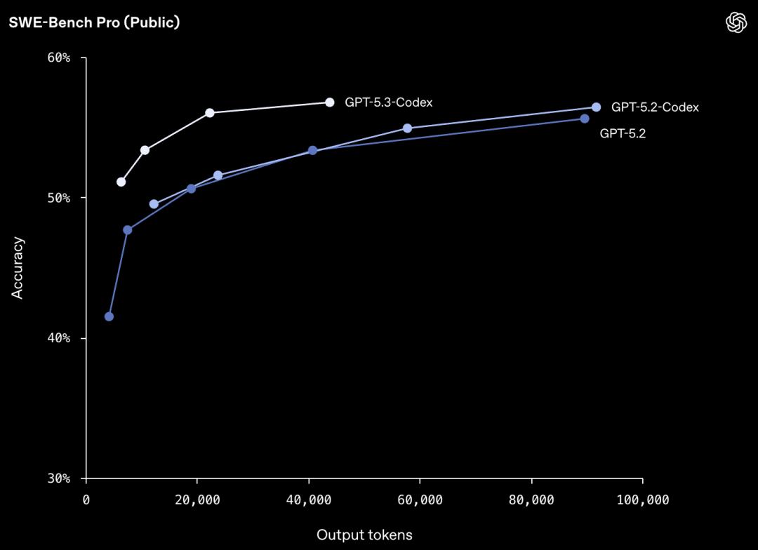 更关键的是效率。在拿下这些成绩的同时,GPT-5.3-Codex使用的token数量少于任何以往模型。