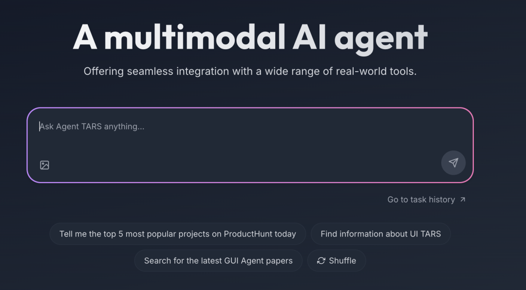Agent TARS支持一键式开箱即用的CLI,可以在有界面的Web UI环境执行,也能在无界面的服务器环境运行;