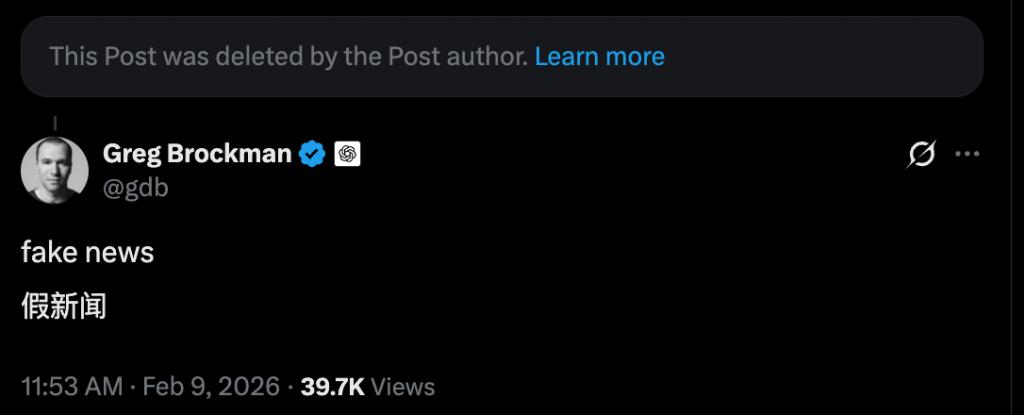 OpenAI 总裁 Greg Brockman 转发了相关的推文,直接评论「假新闻」;公司的发言人也表示「这完全是假的」。