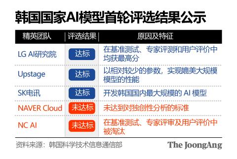 韩国国家AI模型首轮评选结果(图源:中央日报)