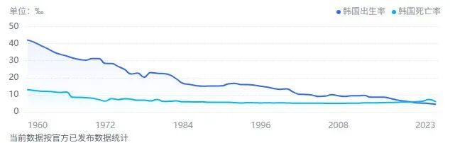 韩国的人口出生率和死亡率(图源:百度)