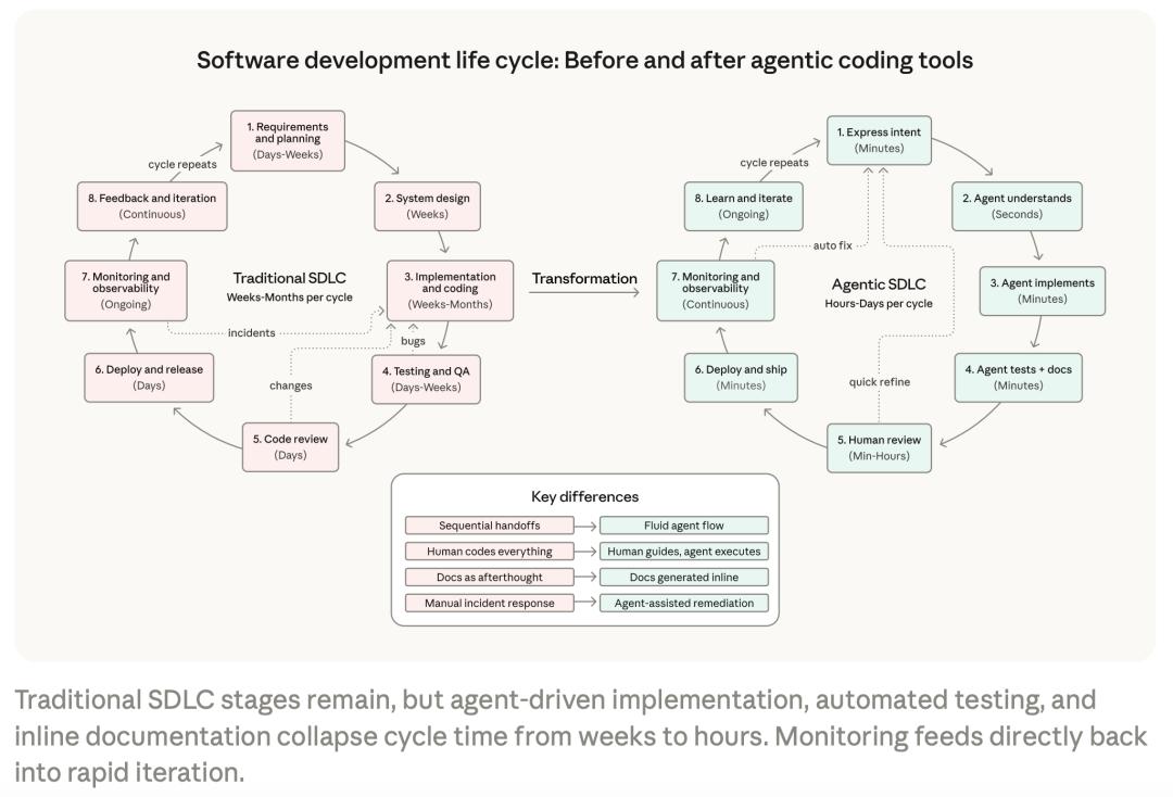 2. 编码民主化超越工程师群体。 网络安全、运维、设计、数据科学——这些「非传统开发者」也能用智能体编码了。Anthropic自家的Cowork工具就是信号。