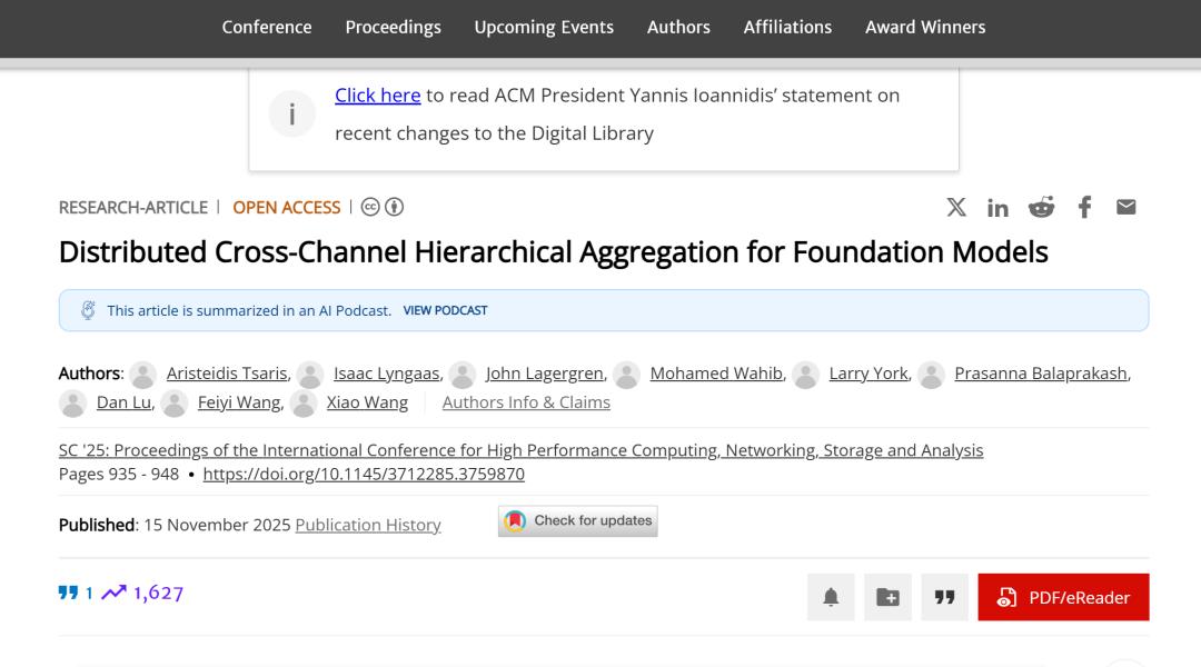 相关研究成果以「Distributed Cross-Channel Hierarchical Aggregation for Foundation Models」为题,已发表于 SC25。