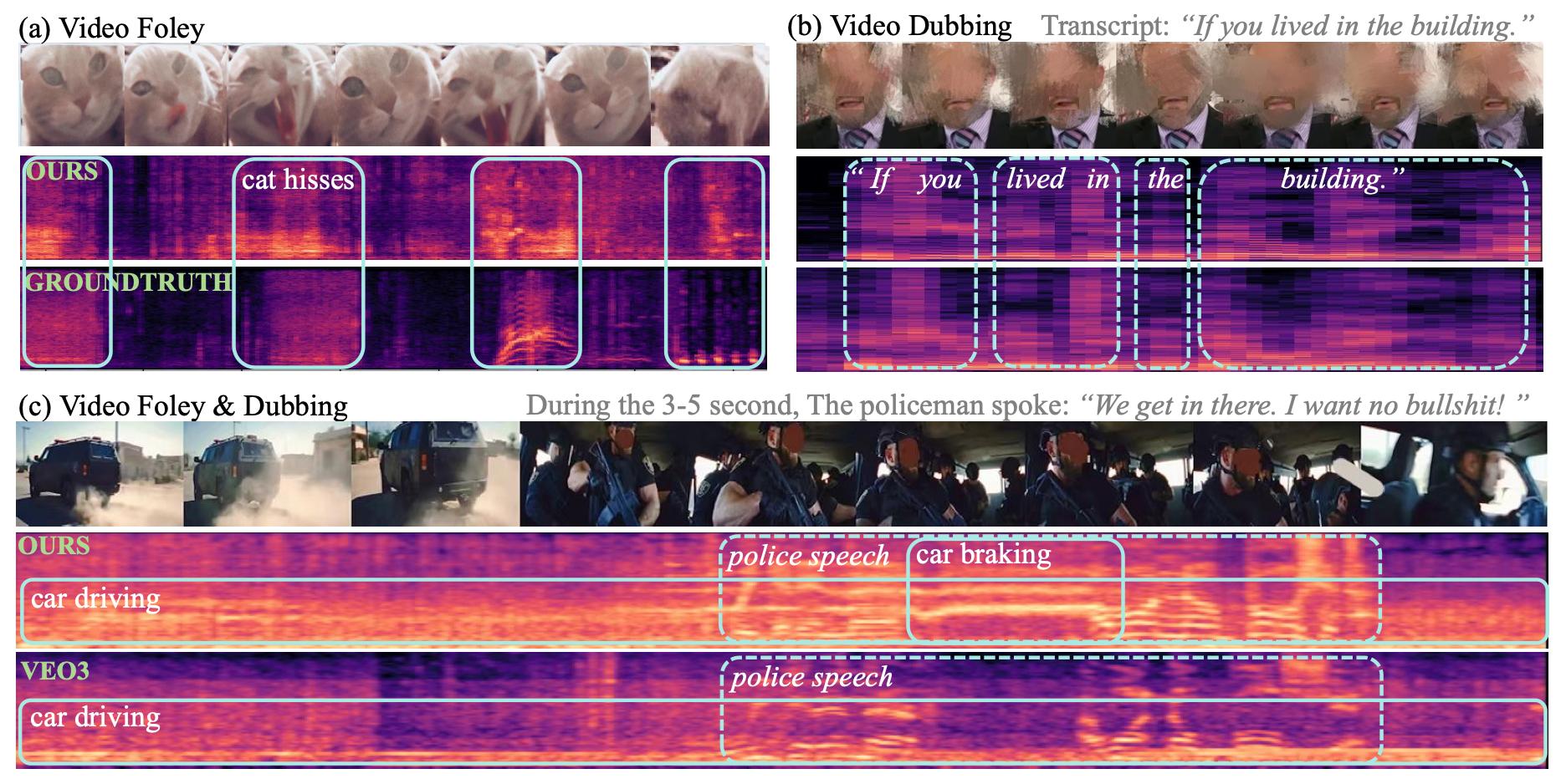 通过苹果和中国人民大学联合发布的论文以及9to5Mac的相关报道,我们可以了解到,VSSFlow的主要亮点是打破了以往「环境音」和「对话语音」需要分别生成的限制。具体来说,以往的大部分视频生成语音模型,都是把音频中的环境音和人声分开处理,而VSSFlow的优势在于一站式同步生成。