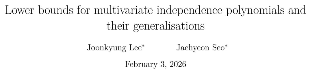 论文「Lower bounds for multivariate independence polynomials and their generalisations」是由人类与Aletheia协作完成,共同证明了相互作用粒子系统(称为独立集)的界限。