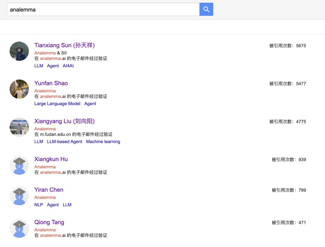 更加让人惊讶的是,这一团队居然如此年轻。据 Google Scholar 搜索结果显示,日行迹研究团队成员平均年龄不足 30 岁,其中多人为 MOSS 和 InternLM 大模型的核心贡献者。