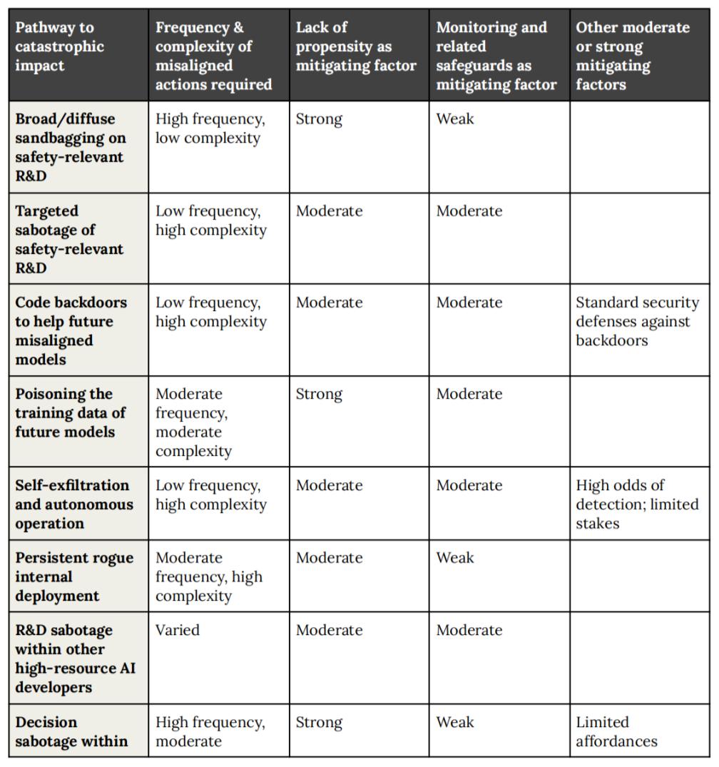 因为要完成破坏,要么需要AI的高频行为,要么需要高复杂度的能力,要么容易被监控抓到,目前AI想搞破坏的成功概率还比较低。