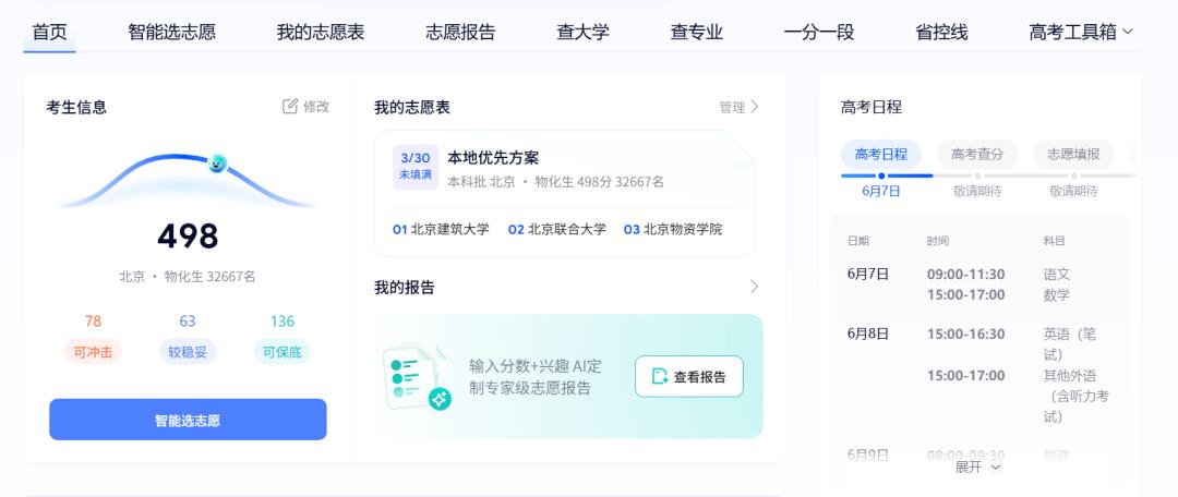 最直观的变化发生在高考志愿填报。2025 年志愿季,多家互联网平台上线对话式 AI 志愿工具后,传统咨询流程被显著压缩。用户只需输入分数、位次、城市偏好与专业意向,系统即可生成完整院校组合方案,并附带录取概率、专业梯度与就业方向分析。
