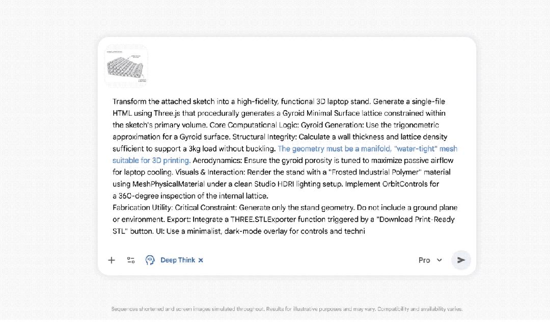新版Deep Think可以分析草图,对复杂形状进行建模,并直接生成用于3D打印的实体文件。这是它打印的一个笔记本电脑支架: