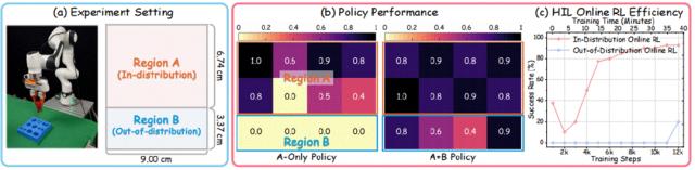 此外,框架还利用数字孪生中的高效采样识别失败频发但信息密集的关键配置,用于引导真实机器人上的定向人类在回路探索。