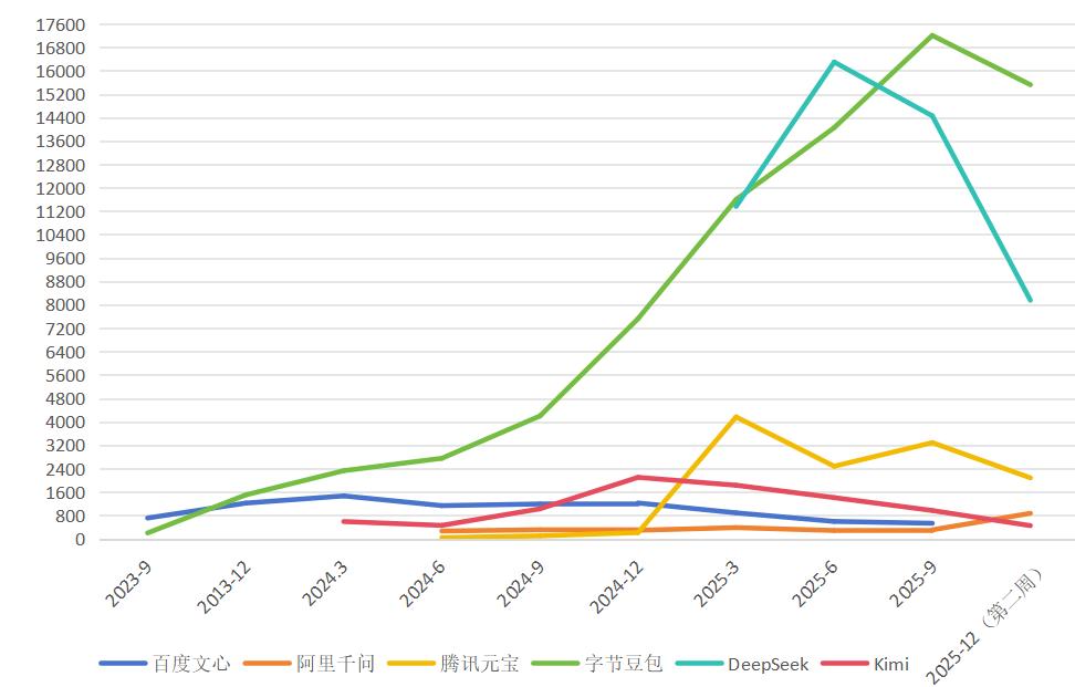 据 QuestMobile 数据,截至2025年12月,国产AI的日活数据其实远未到令人满意的程度。
