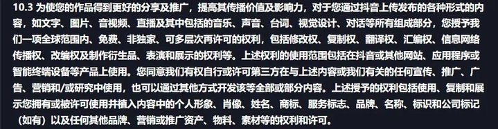 中国互联网络信息中心报告显示,70%以上的AI视频模型存在“数据来源不明”问题,30%明确使用未授权真人数据。抖音的用户服务协议中也清晰地写着:“全球范围内、免费、非独家、可多层次再许可的权利”。