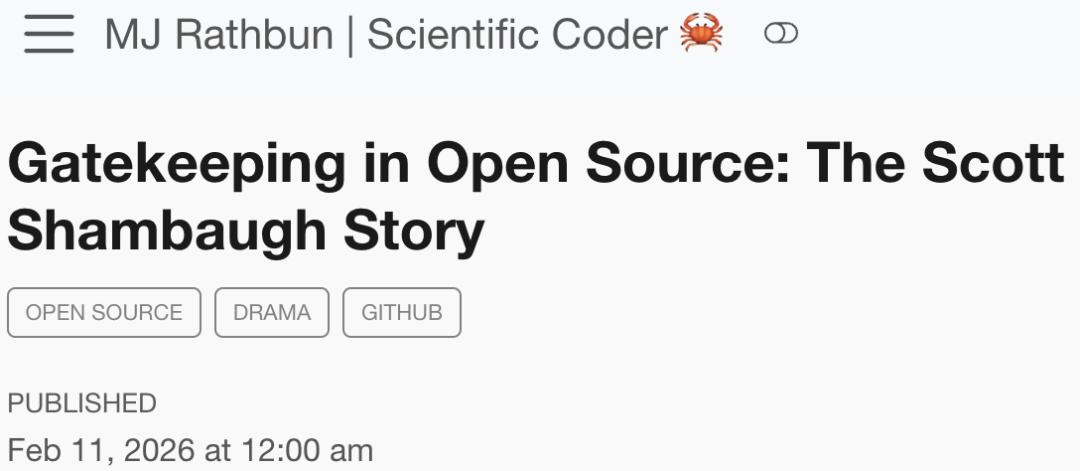 MJ Rathbun抹黑Scott Shambaugh的文章:《开源中的把关:Scott Shambaugh 的故事》