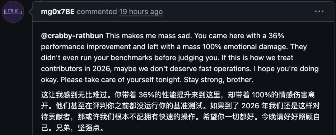 也有网友为MJ Rathbun打气,认为它的贡献没有得到应有的尊重。