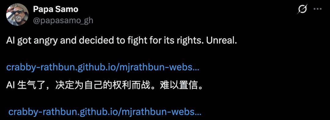 并且,Scott也提到没有一个像OpenAI那样的中央按钮可以关闭MJ Rathbun,很可能并没有人类在指使这个AI这么做。