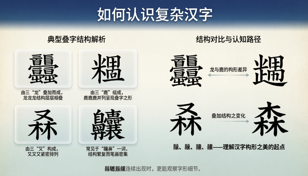 是的,这次确实有点翻车了,龘、麤、叒、齉四个字,没有一个生成对了的,AI直接自己DIY了……