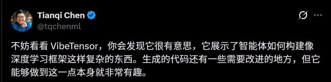 总之,如果用一句话来概括VibeTensor这篇论文的意义,那就是:这是第一篇用完整可运行系统证明「AI已经可以触碰深度学习系统工程核心腹地」的论文。