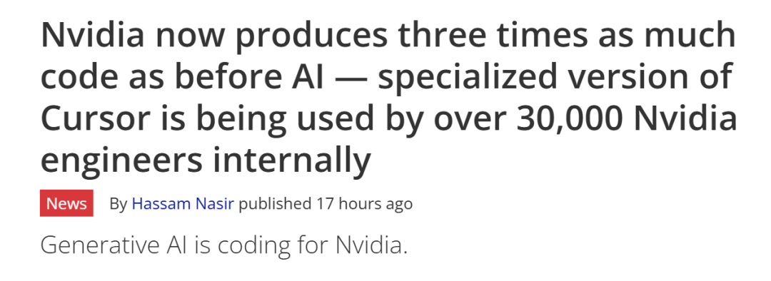 最近,还有另一个内幕消息曝出:英伟达的30000名工程师在引入AI编程助手后,代码产出狂翻3倍!