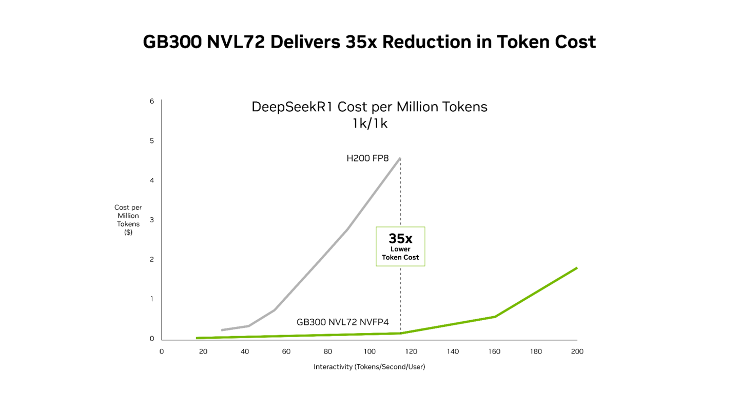 IT之家 2 月 18 日消息,英伟达于 2 月 16 日发布博文,宣布其 Blackwell Ultra AI 架构(GB300 NVL72)在能效与成本上实现显著突破,通过 DeepSeek-R1 模型测试,相比前代 Hopper GPU,其每兆瓦吞吐量提升 50 倍,百万 tokens 成本降低至 35 分之一。