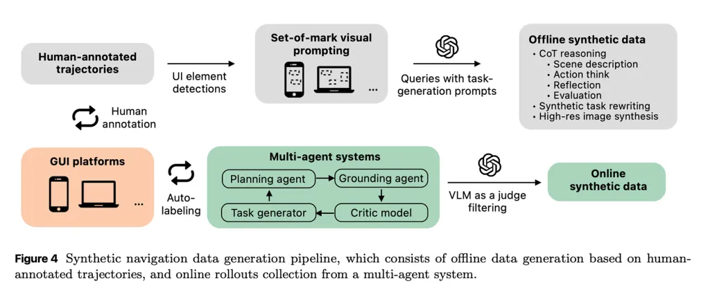 这种机制不仅生成了海量训练样本,还让模型学会了如何应对现实操作中的错误与意外情况(如点击无反应或弹出干扰窗口),其效果远优于单纯依赖人工标注的清洁数据。