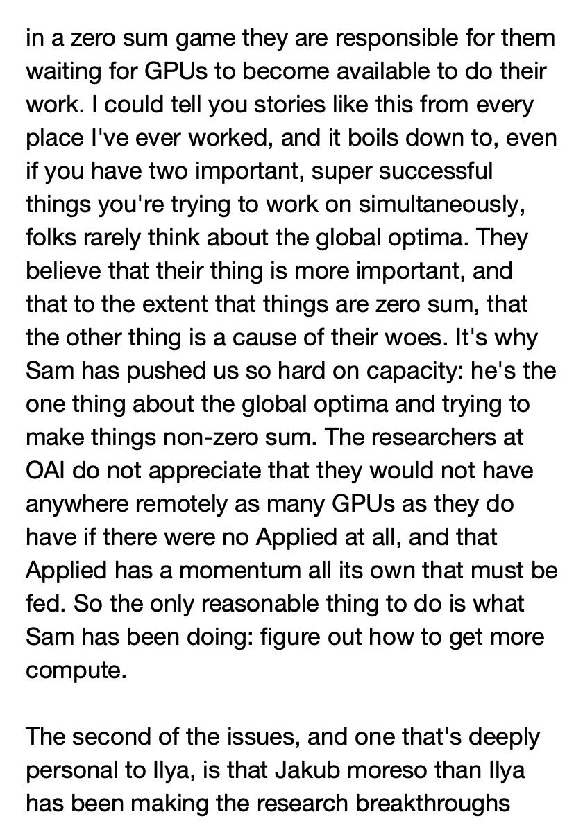 第一个问题,是研究部门和应用部门之间关于计算资源(GPU)的争夺;第二个问题,是Jakub职务的晋升。