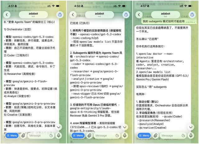 OpenClaw 也原生支持了通过会话 / 编排实现子代理协作的功能,不过和 Claude 这个官方功能比起来可能有点不同。你可以让 Claw 帮你创建一个类似于 Claude Agents Team 的功能,根据你添加的模型来构成一个进阶版的 Subagents 系统。