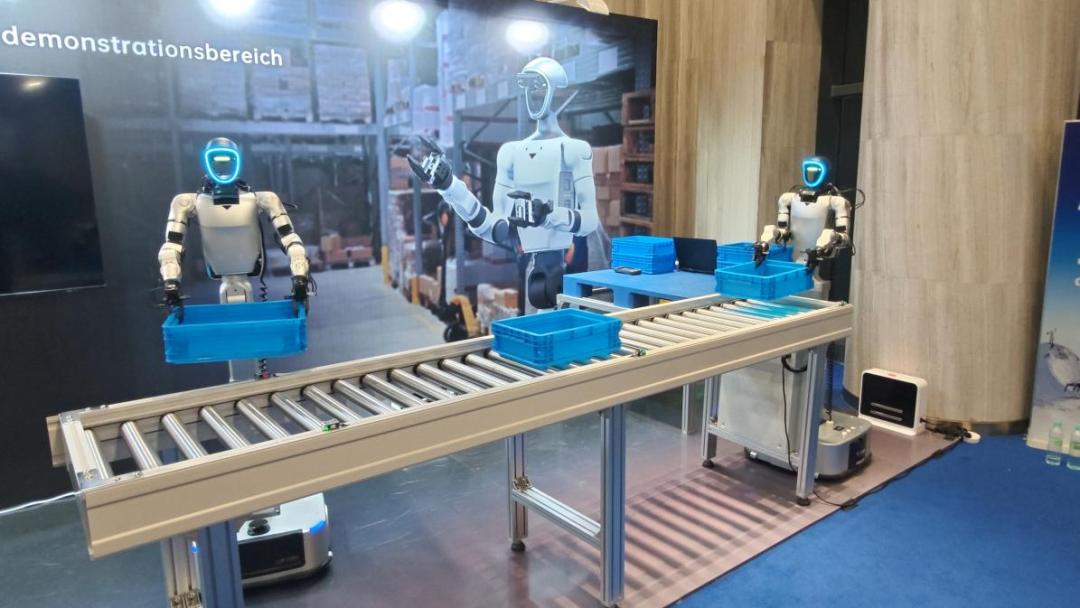 采用中科第五纪“具身大脑”的宇树机器人展示工业场景的搬运工作