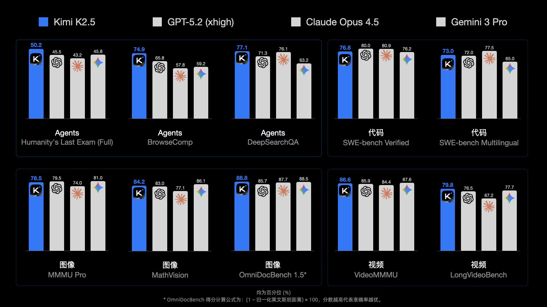 在「智能体工具调用能力」这条路上继续狂奔,月之暗面在今年1月底带来了最新的Kimi K2.5大模型。