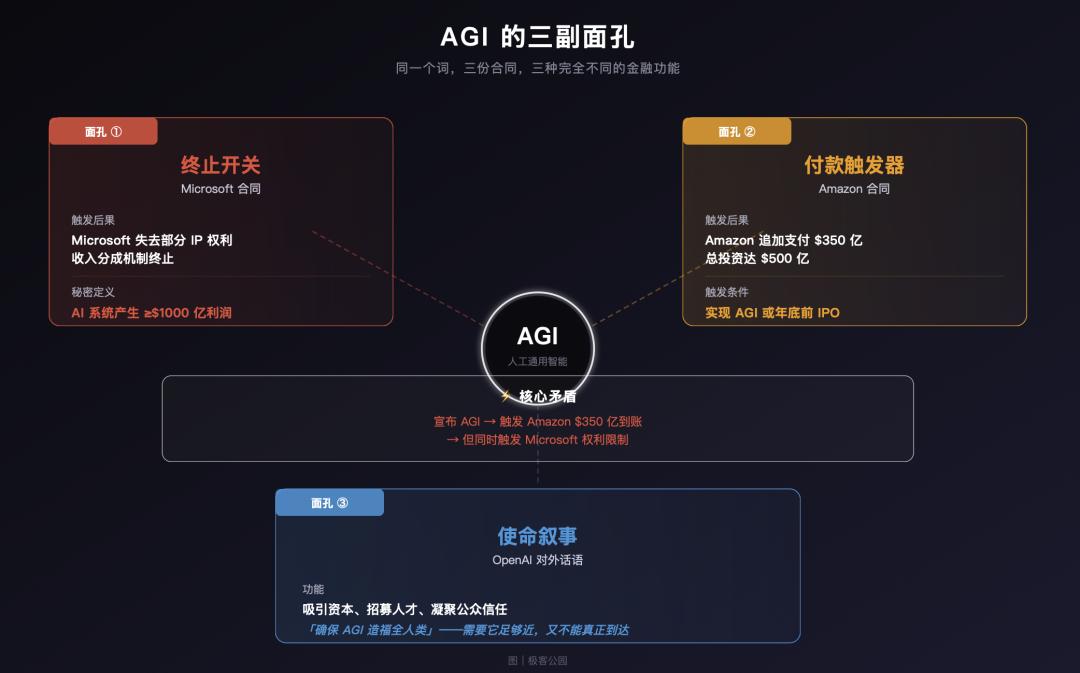 在这笔交易里,AGI——人工通用智能,这个 AI 领域最核心、最具哲学重量的概念——已经被彻底改造成了一个金融工具。