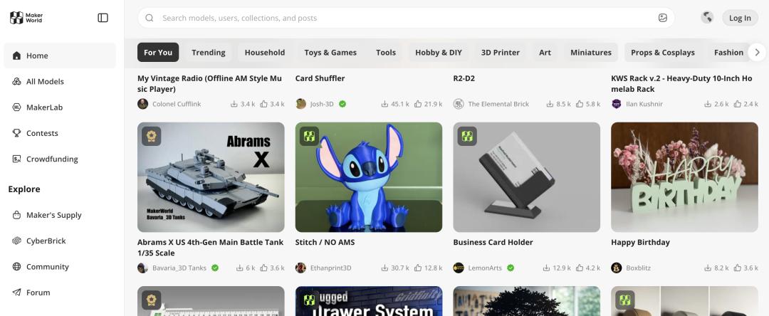 3D 打印模型社区 MakerWorld|图片来源:MakerWorld 官网