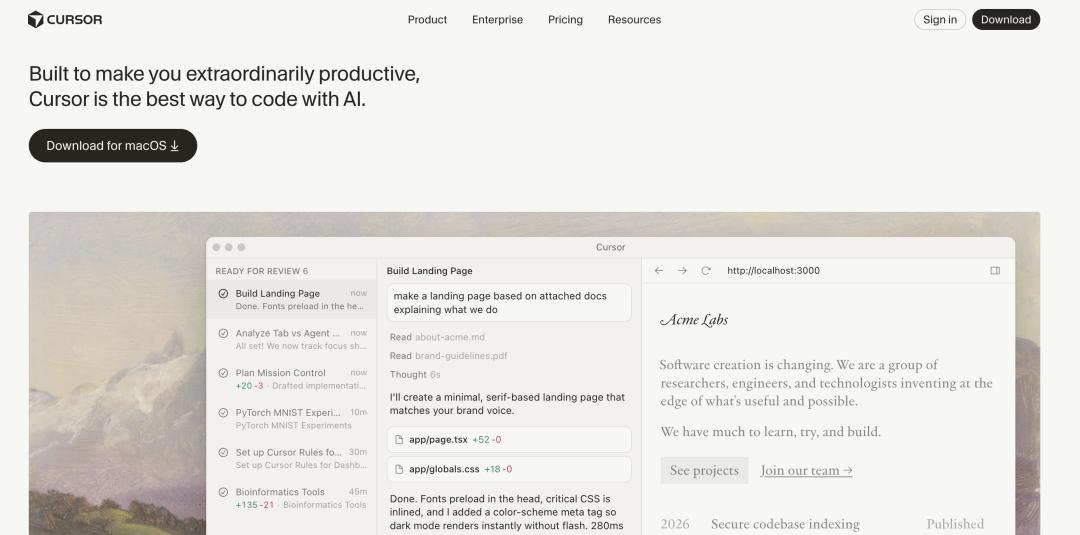半年前 CURSOR 还是被行业热议的热门 Vibe Coding 工具,而今以很少出现在 AI 圈的话题中心|图片来源:CURSOR 官网