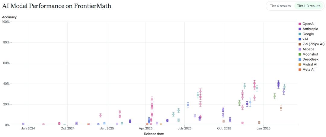 刚上线时最强AI连2%的题都做不出来,结果到了今天,GPT-5.2和Claude Opus 4.6已经能搞定基础题库40%以上的题目,连50道终极难度的第4级挑战题,正确率也突破了30%。