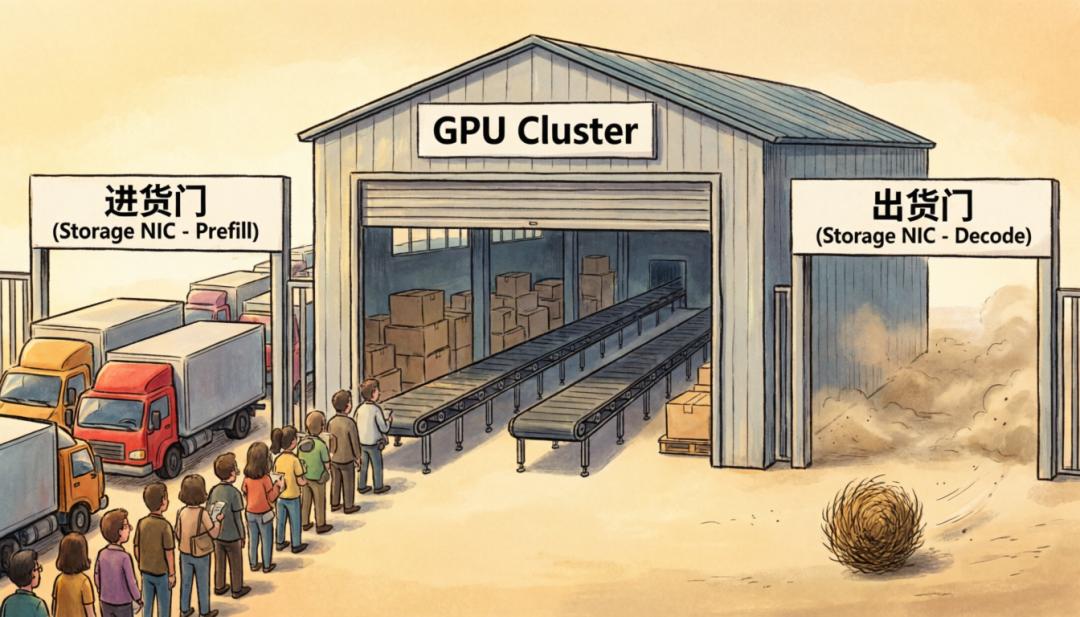 这位由计算网卡(CNIC)扮演的“交警”必须彻底隔绝两种数据流量,确保解码引擎拉取数据绝对不能影响GPU之间的集体通信。