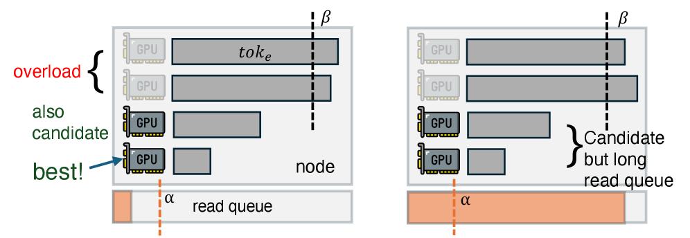 在引擎间,它不仅会监控每个GPU当下的计算负载,也就是待处理的token数量;还会同时监控底层分布式存储在每个节点上的磁盘读取队列长度。