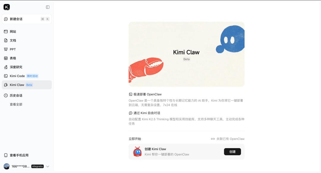 目前 Kimi Claw 仍处于 Beta 测试阶段,仅对 Kimi Allegretto 以上的会员开放使用权限。