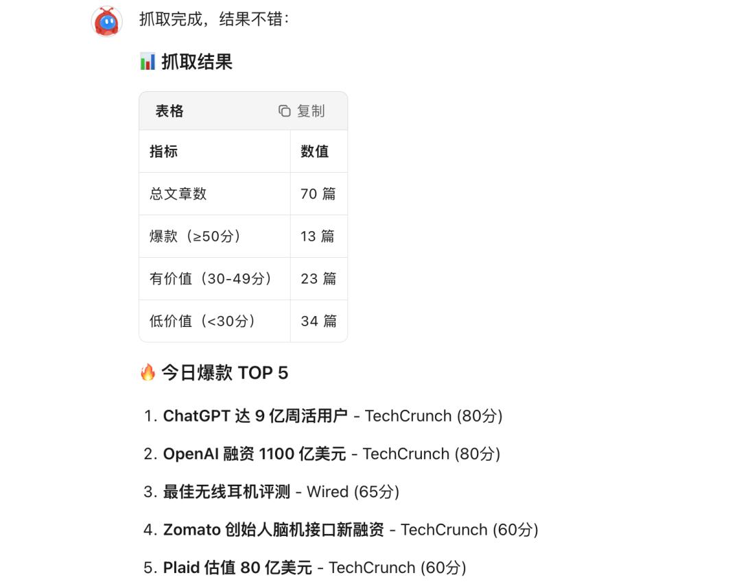 Kimi Claw 自动抓取结果|图片来源:极客公园