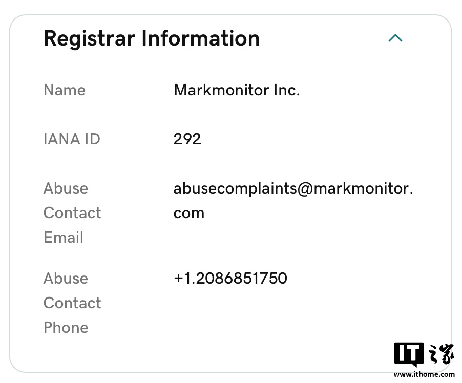 目前,GPT.com 被注册在企业级域名注册商 MarkMonitor 旗下的 DNStination Inc. ,因此我们目前还无法确凿地判定该域名归 OpenAI 所有。